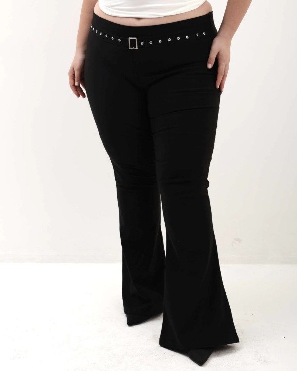 Tiene tiro bajo, pierna oxford y un detalle de hebilla con cierre lateral que lo hace único.