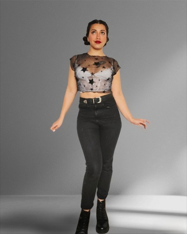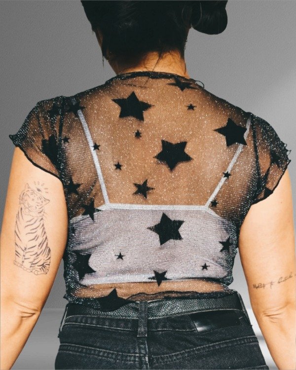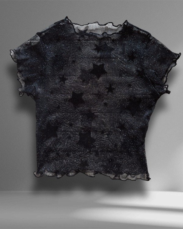 Top de microtul con lurex y estrellas aterciopeladas. Diseño exclusivo.