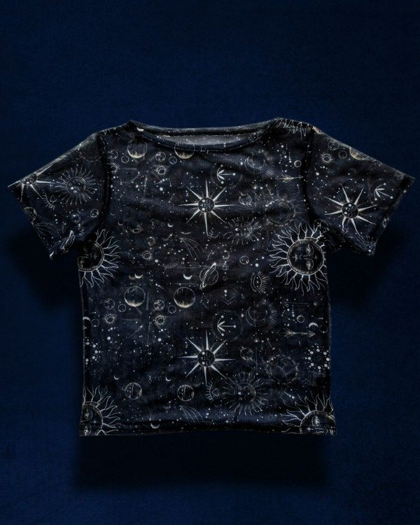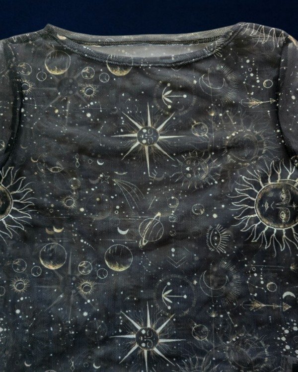 Top de microtul. Estampa de estrellas, soles, lunas... Diseño exclusivo.