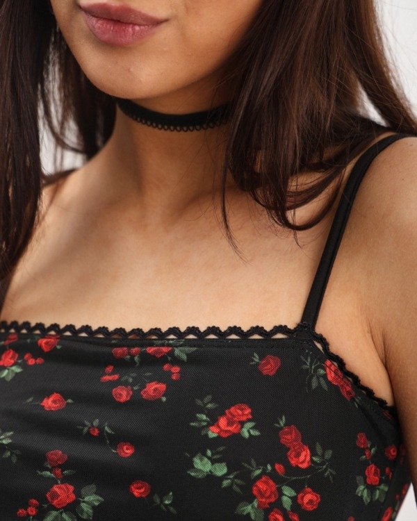 El corte tubo estiliza, los breteles finos suman frescura y el estampado floral lo hace imposible de ignorar.
