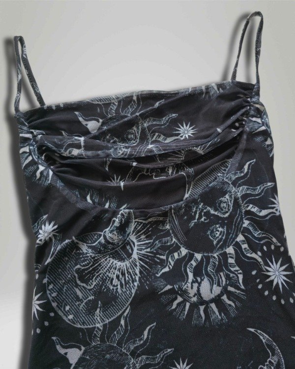Frunce en busto, queda abuchonado. El vestido viene con forro interno para que no transparente. La espalda es escotada ♡