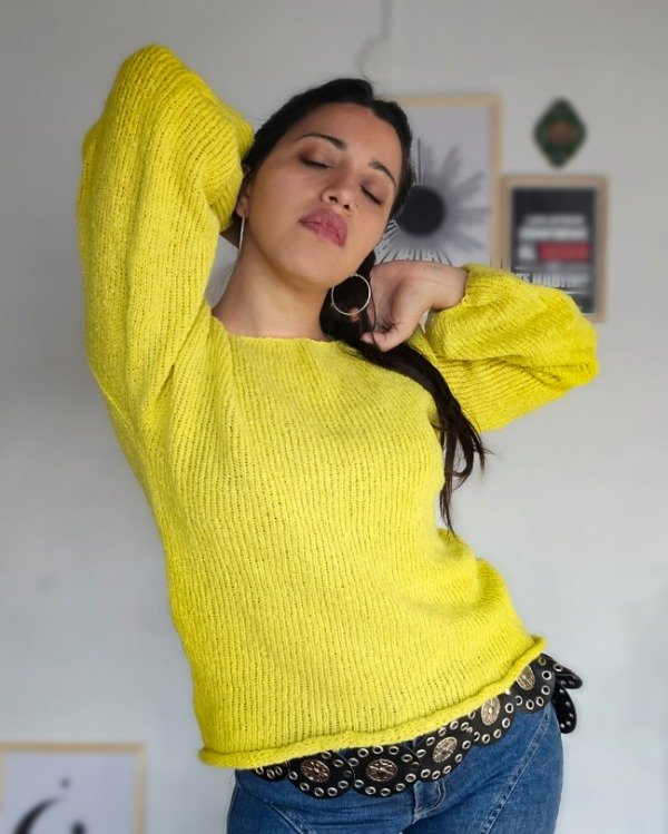 Suave, liviano y con mangas abullonadas que marcan presencia. La lana térmica es finita lo q lo convierte en un aliado indispensable para media estación.