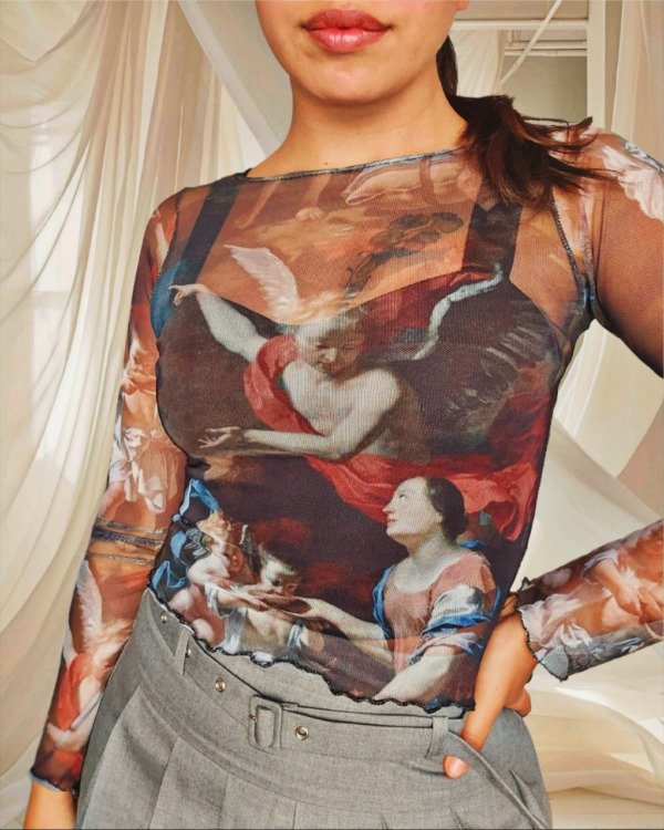 Este tipo de print es muy usado en moda por su potencia visual y su carga simbólica: lo sagrado, lo etéreo, lo femenino idealizado.