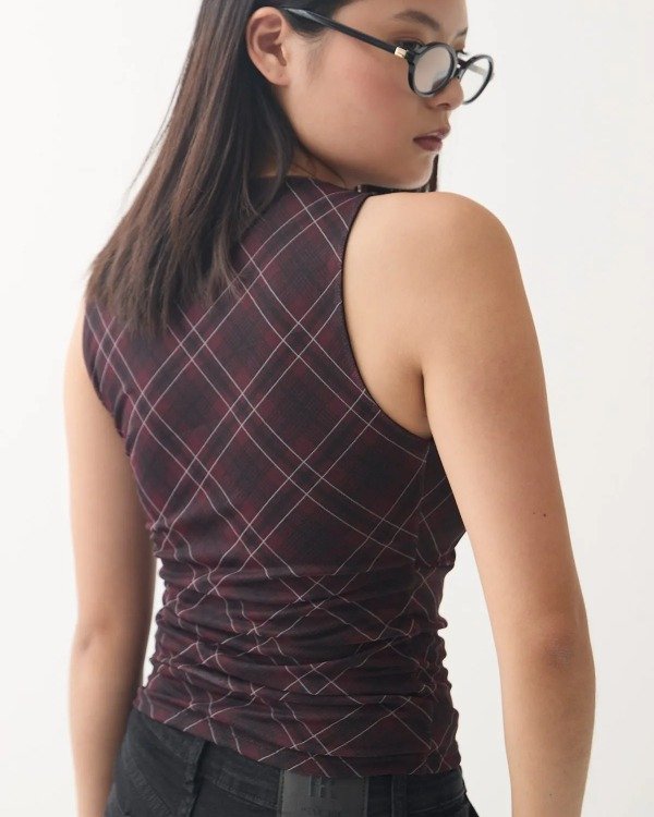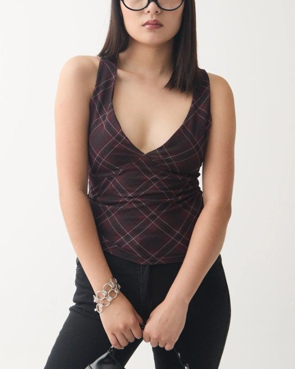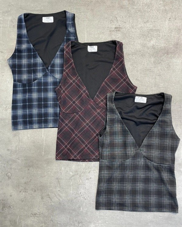 Top escote V microtul forrado en escocés. 🖤