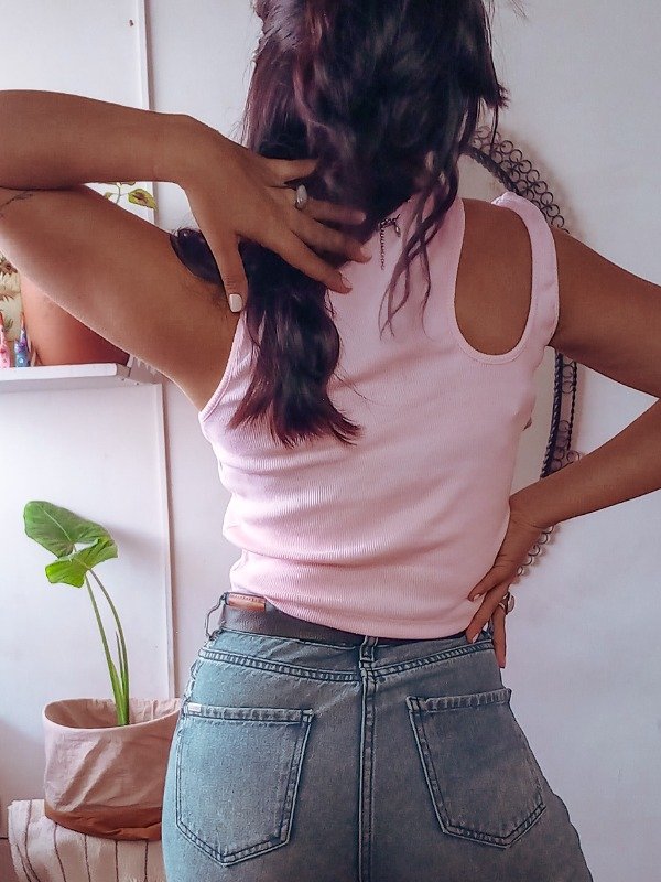 Top de morley de algodón. Es una tela gruesita y suave.